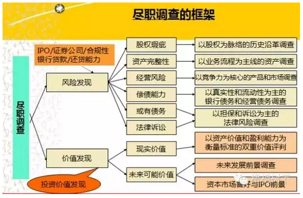 Tips: 法律尽职调查可以分为两部分,一部分是公司本身的法律情况,需要依赖律师去尽职调查,投行需要关注未来的风险所在;另一部分是交易所涉及的法律问题,此部分投行要充分组织和积极参与讨论,具体的工作可以以律师为主。