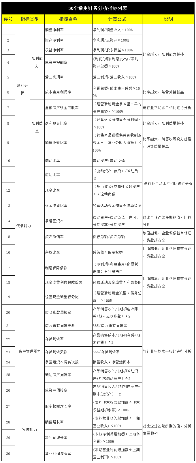 30个常用财务分析指标