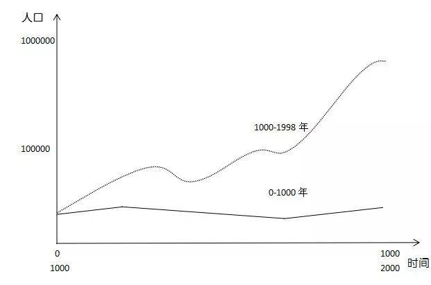 图:西欧人口变化的两千年比较,来源:麦迪森[1]